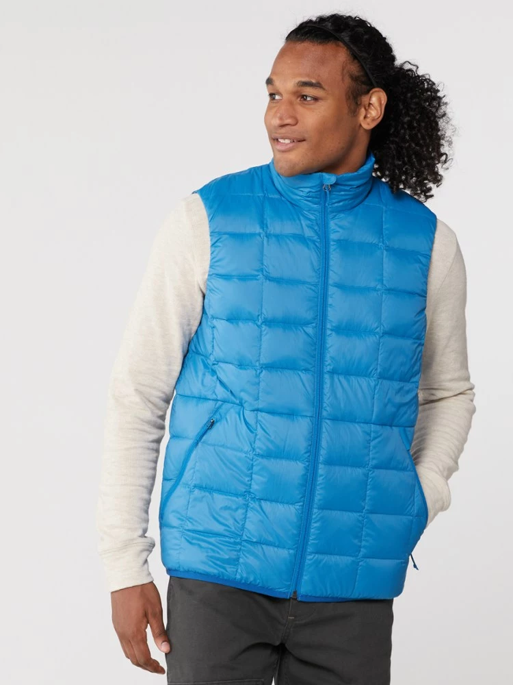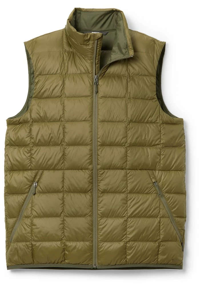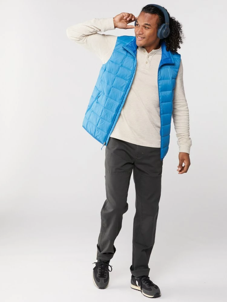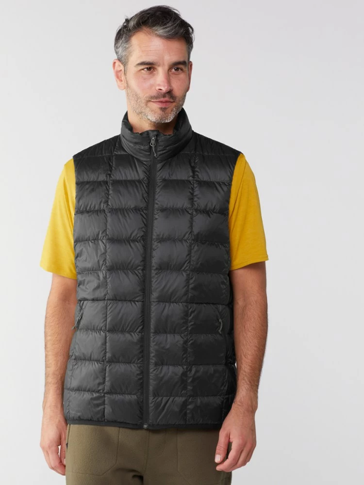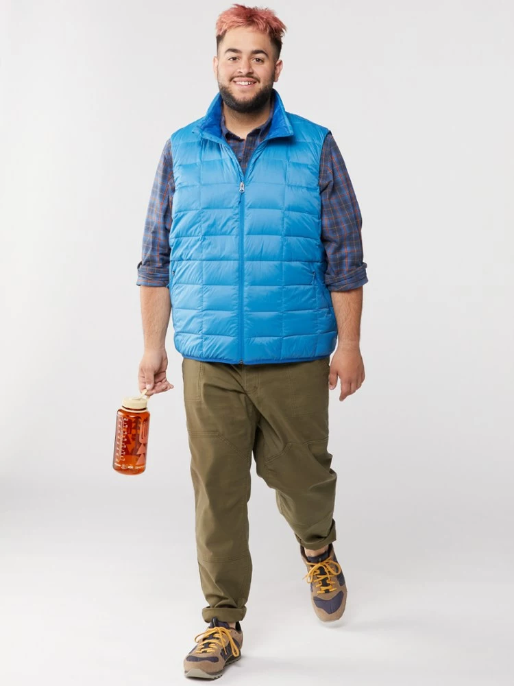 At the sweet spot of light enough for everyday wear, yet warm enough for trail duty, you’ll find the men’s REI Co-op 650 down 2.0 vest—now with a shell of recycled nylon taffeta.