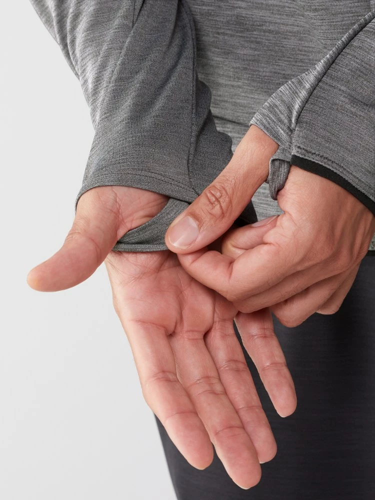 - Thumbhole cuffs keep sleeves in place when you’re active