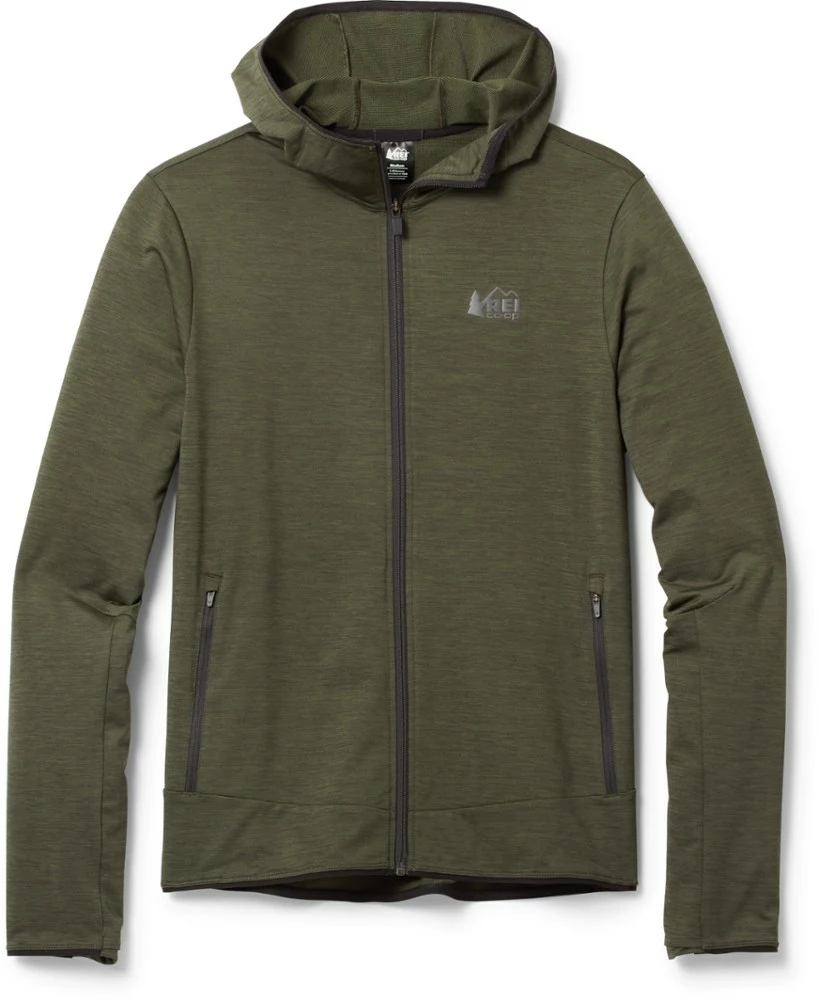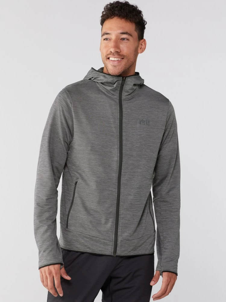 With 4-way stretch and wicking mesh fleece inside, the mid-weight men’s REI Co-op Active Pursuits full-zip hoodie is warm but breathable—ideal for warm-up and cooldown time.