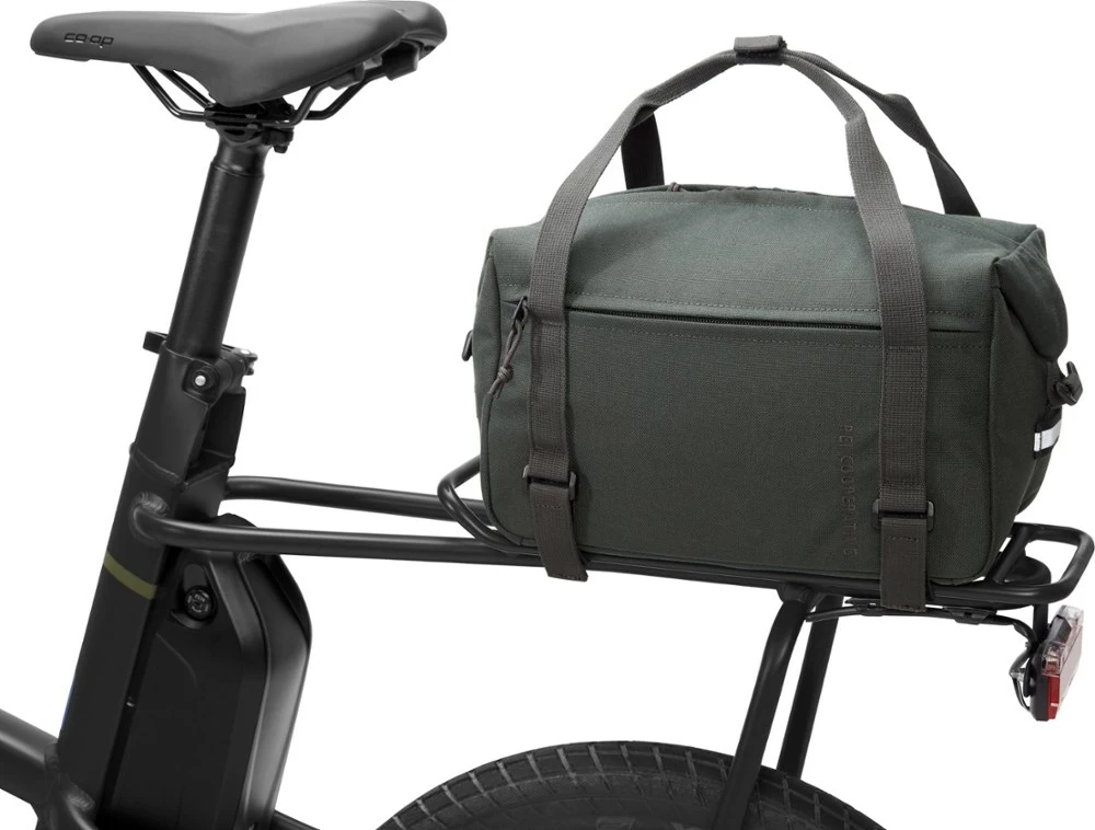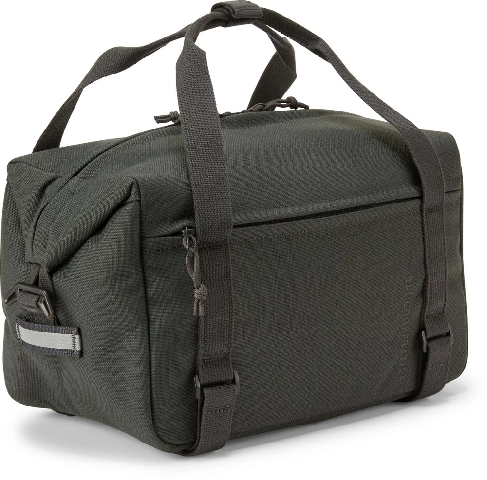 Like a car trunk that you can carry—on your bike and on your shoulder—the REI Co-op Beyonder Rack Trunk helps lug your stuff to the store, park or work. The side toggles let you adjust the size.