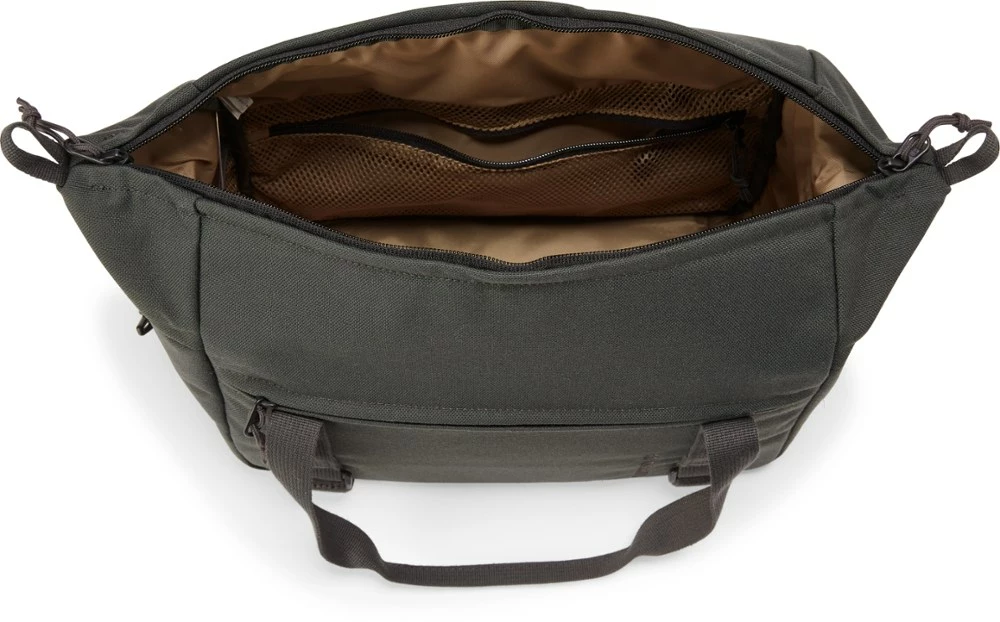 - Rugged 1,050-denier nylon shell has a durable water repellent (DWR) finish to shed light rain and tire spray