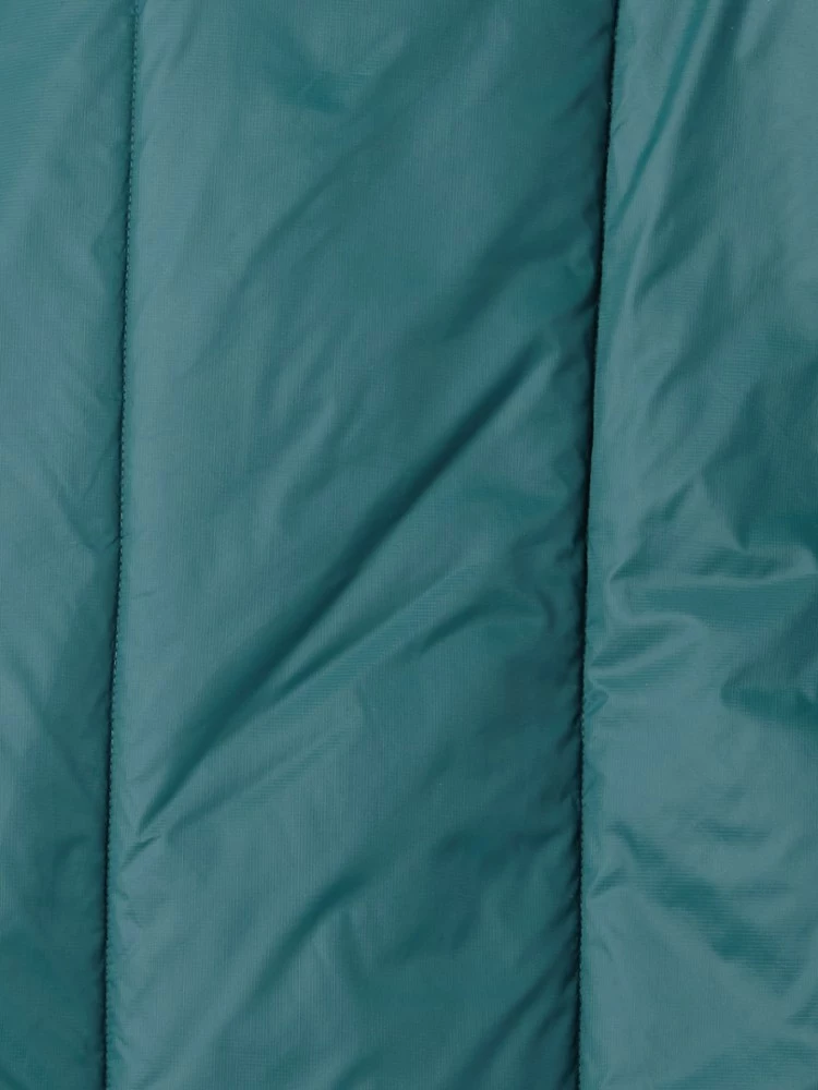 - Polyester fiber insulation with quilt-through construction is warm and lightweight