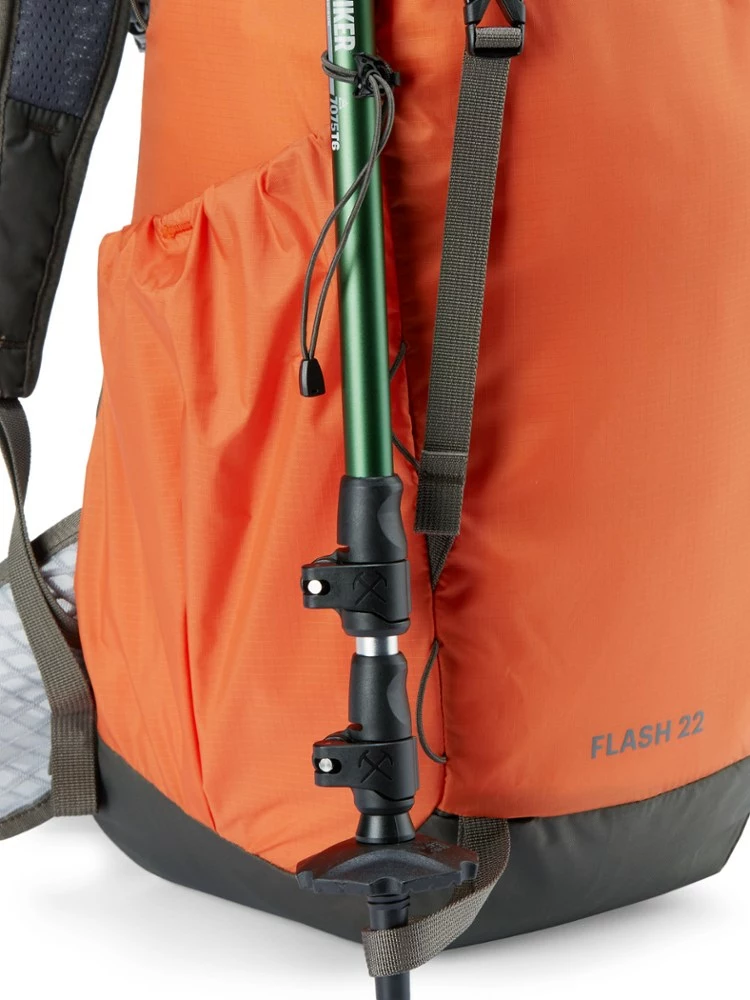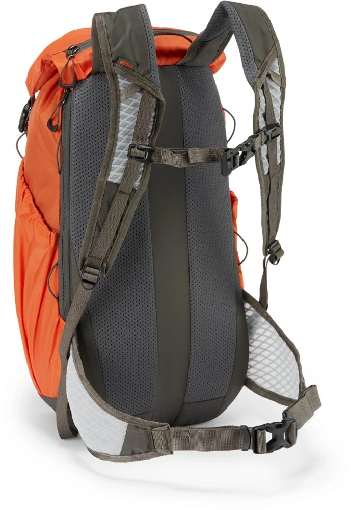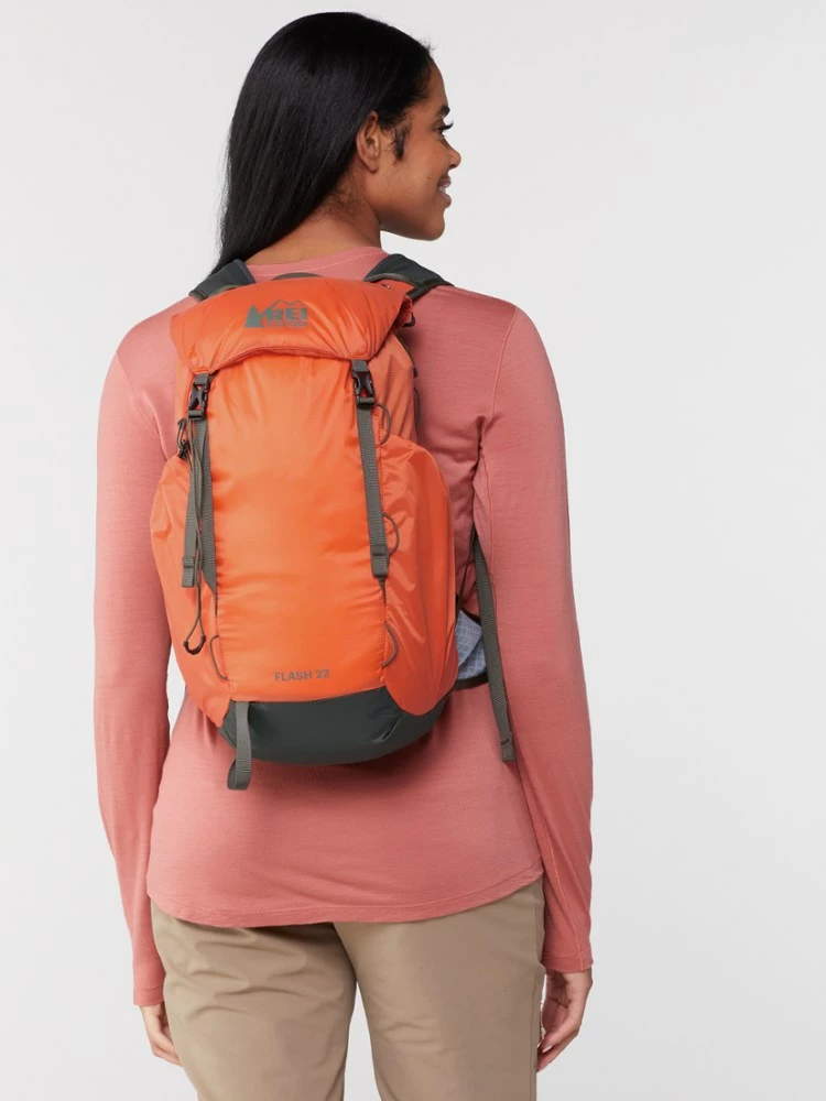 Lean, clean and well-appointed, the 14 oz. REI Co-op Flash 22 gives you a removable back pad, waist and sternum straps—even a hydration sleeve—real comfort for a long day hike or summit push.