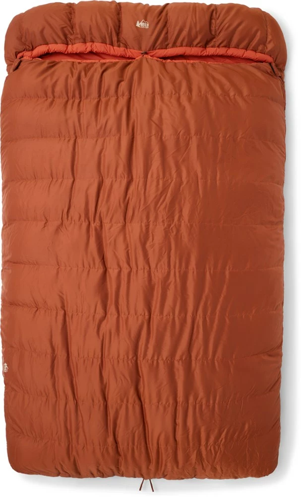 When you and your friend crawl into the REI Co-op HunkerDown 20 Double down sleeping bag after a day of fun, plop your heads down in comfort—the extra-large hood fits 2 home-size pillows.