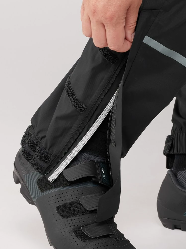 - Hook-and-loop tabs plus elastic at ankles keep pants in position and shut out water