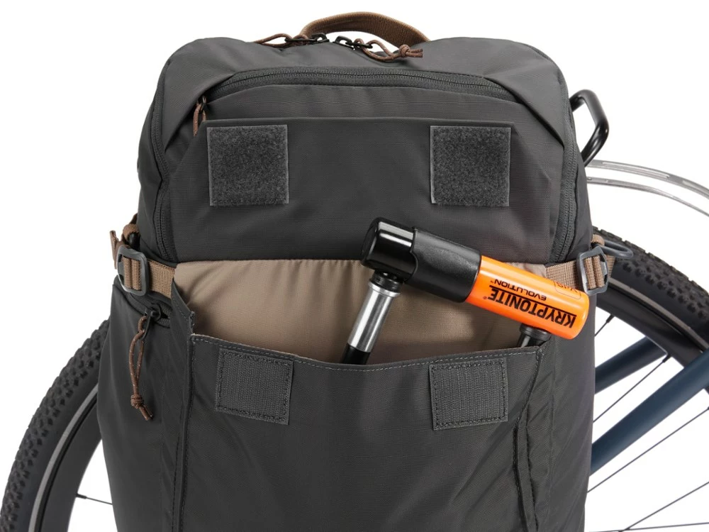 - Exterior pockets for tools, a U-lock, quick-deploy rain cover and other necessities