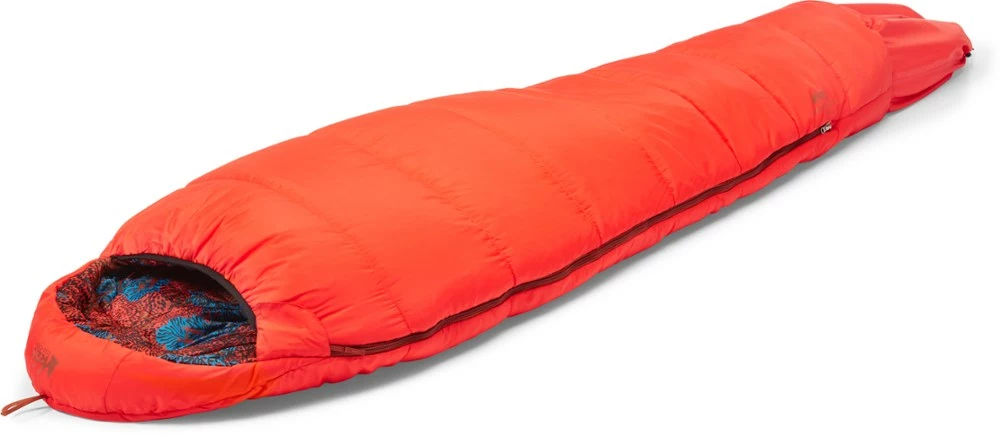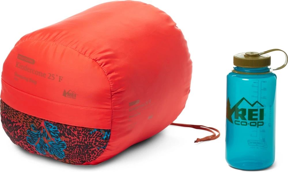 Our warmest synthetic backpacking bag for kids, the REI Co-op Kindercone 25 sleeping bag is now made with a recycled polyester shell and lining. And it adjusts to fit and stay warm as kids grow!