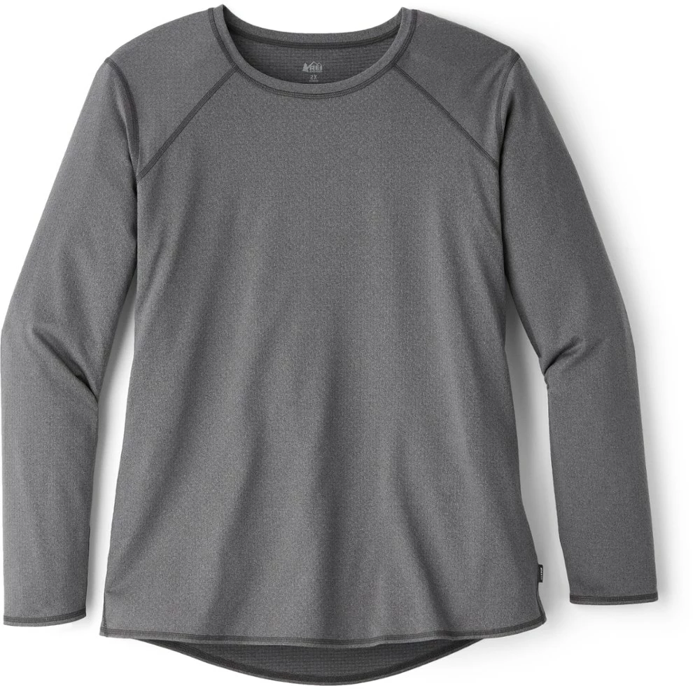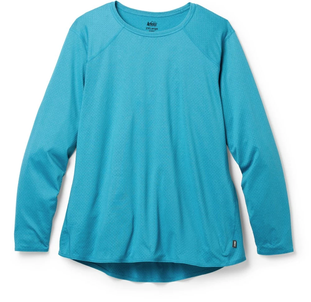 The women’s REI Co-op long-sleeve lightweight base layer crew top wicks, breathes and stretches for comfort through every temperature change as you hike or ski the day away.