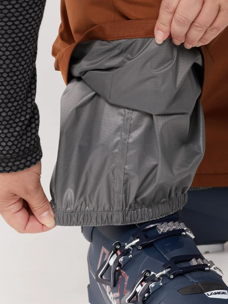 - Boot gaiters with grippy elastic seal out snow; tough scuffguards and reinforced hems provide durable protection in a placement that works for both skiers and snowboarders