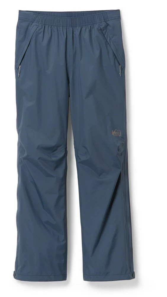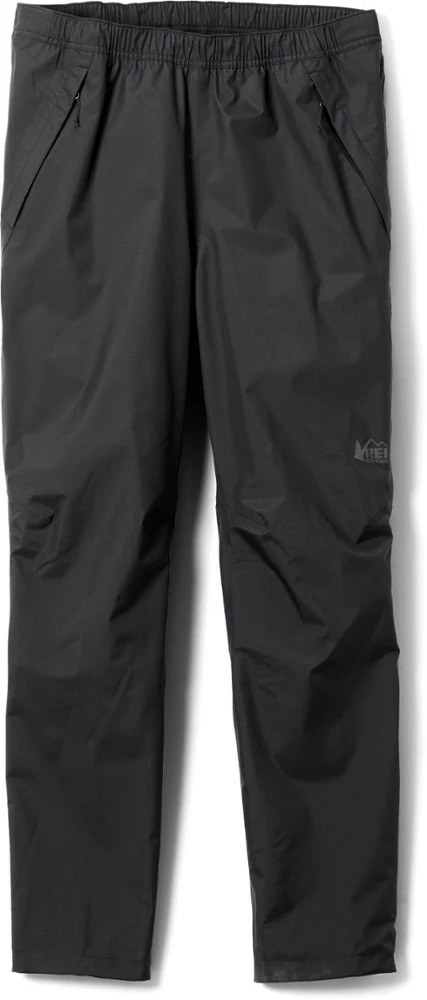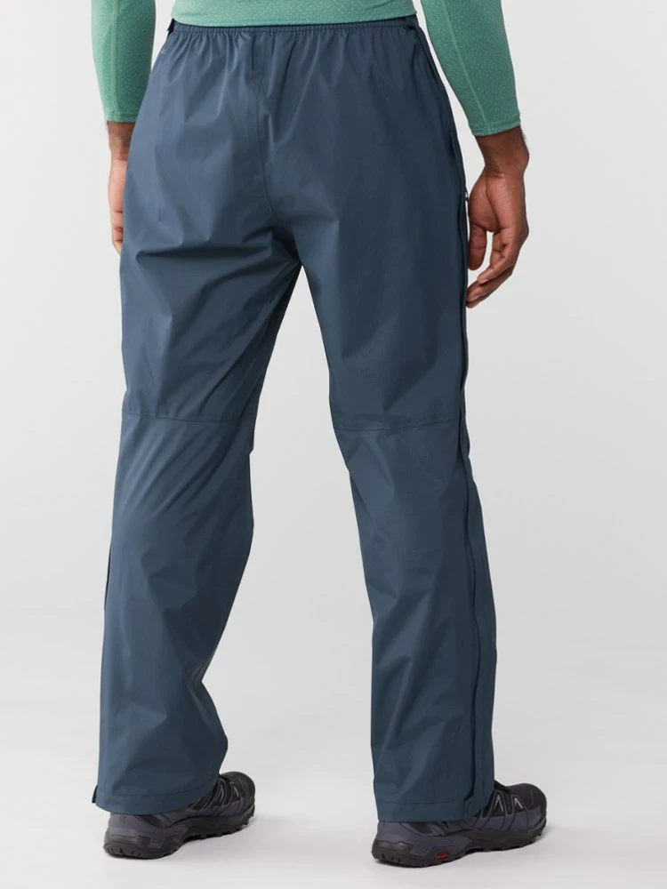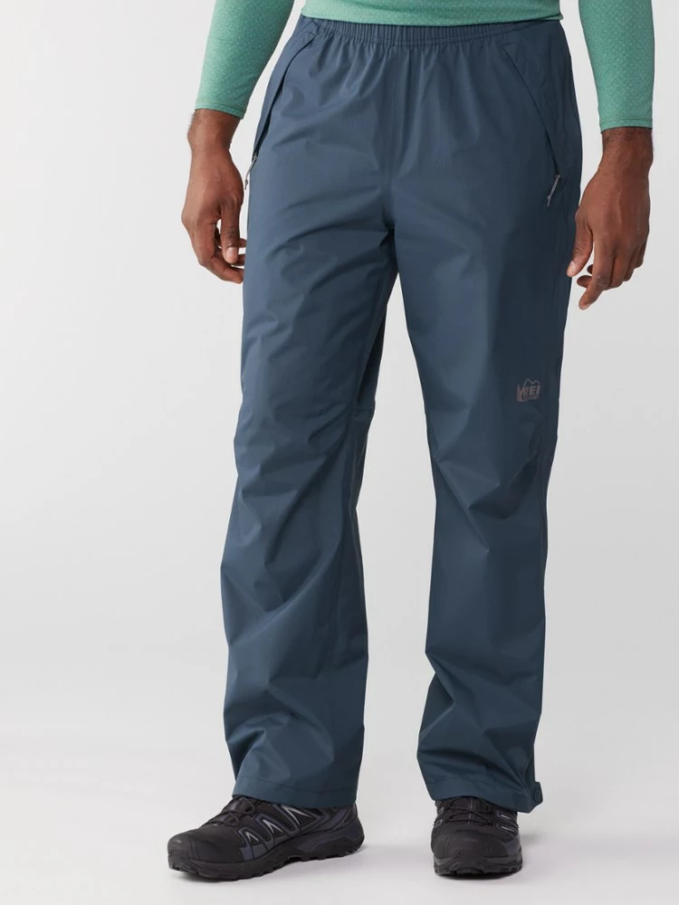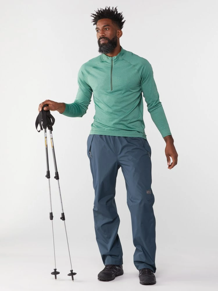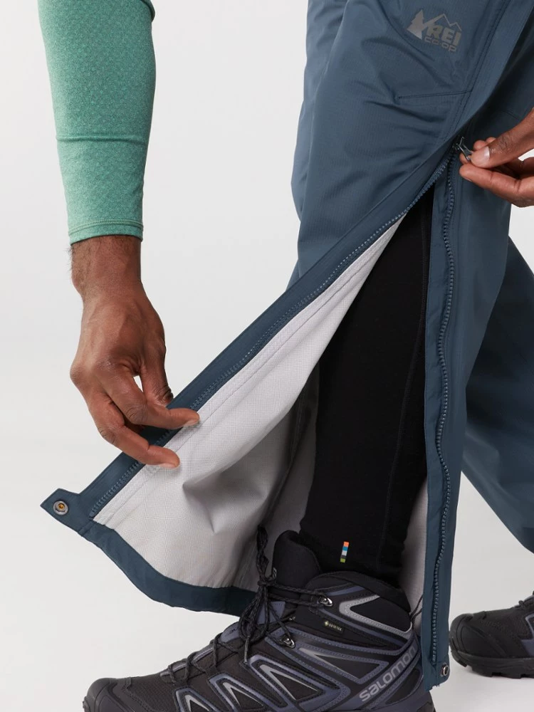 When clouds gather overhead miles from camp, you need protection fast. The men’s REI Co-op Rainier full-zip rain pants pull on in a flash—even over hiking boots.