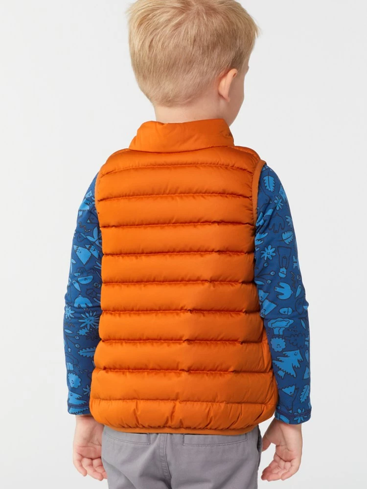 Light, warm and now made with recycled polyester, the toddlers’ REI Co-op Reversible 650 Down vest keeps your tot cozy without snowsuit bulk—plus, it reverses in case lunch break gets messy.