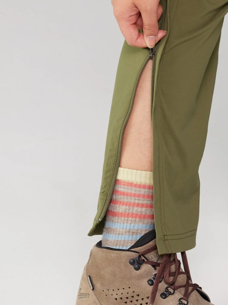- Vertical zippers from bottom hem to mid-thigh allow for more ventilation, and also let you remove pant legs without removing your shoes or boots