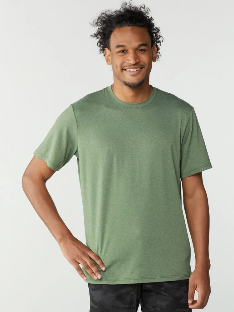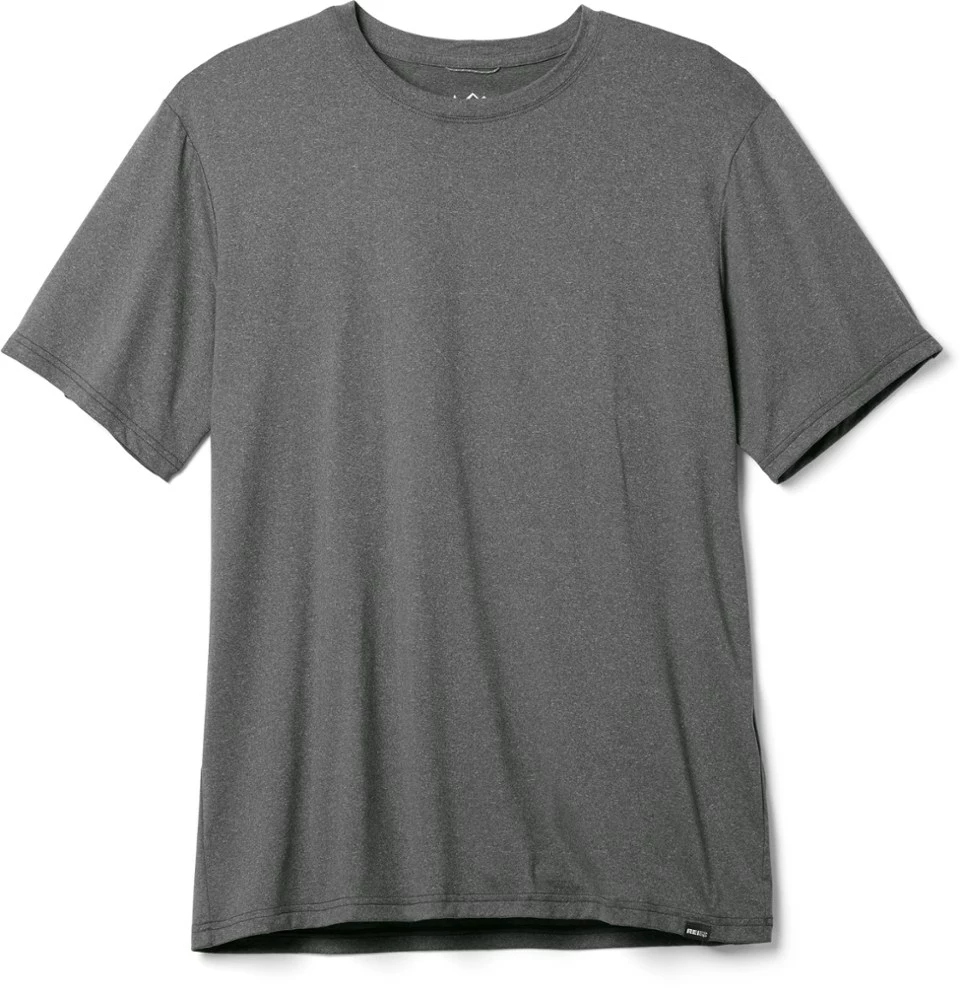 Quick drying material that makes it ideal for handwashing on multiday trips, the men’s REI Co-op Sahara T-shirt wicks sweat, breathes and shades you with solid UPF 30 sun protection.