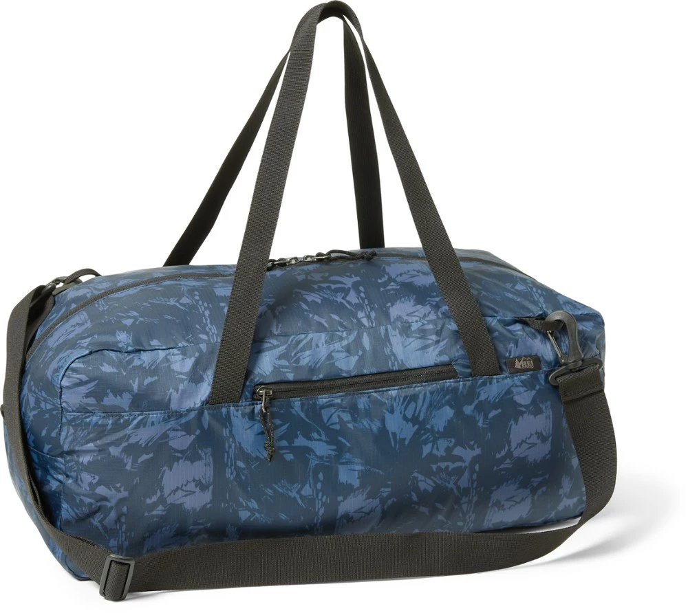 A great lightweight carry-on or gear organizer for longer trips, the 30-liter REI Co-op Stuff print travel duffel has grab handles and a detachable shoulder strap to make hauling your stuff easier.