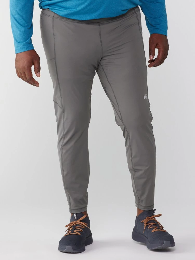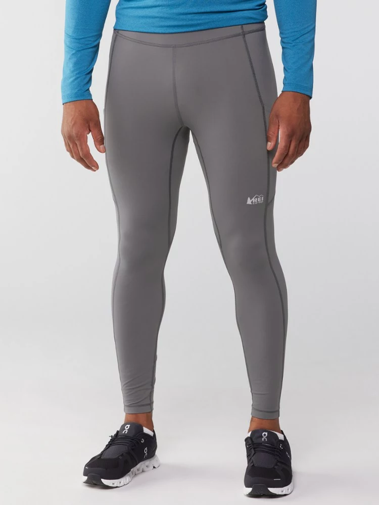 Power up, run far. Strong and stretchy, the men’s REI Co-op Swiftland running tights hold your phone and anti-bonk energy snacks in compression pockets that won’t hinder your stride