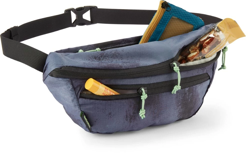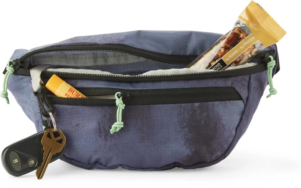 Keep snacks and sunscreen handy on the trail with the REI Co-op Trail 2 print waist pack. Planning a longer journey? It has a secret pocket for your cash and passport that makes it ideal for travel.