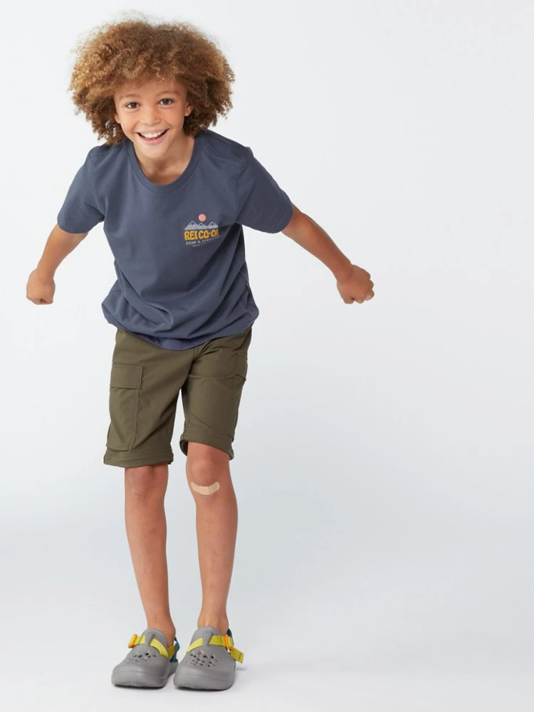 All the trail gear you need since 1938—now they can show their love while out and about in the kids’ short-sleeve REI Co-op Trail Supplies T-shirt.