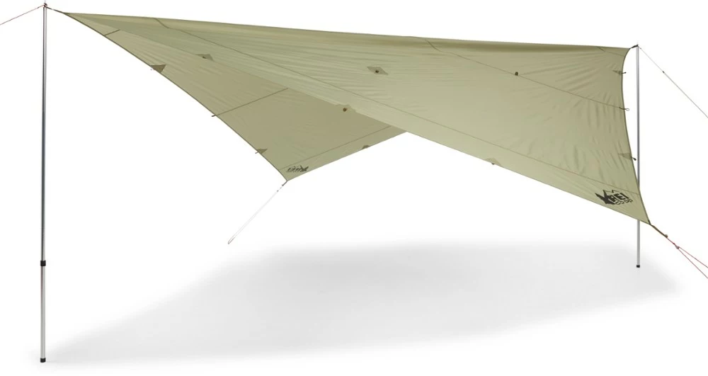 Lightweight and versatile, the 12 x 12 REI Co-op Trailbreak tarp keeps your camp and gear protected from the elements, offers plenty of pitching options and has gear loops so you can hang a light.