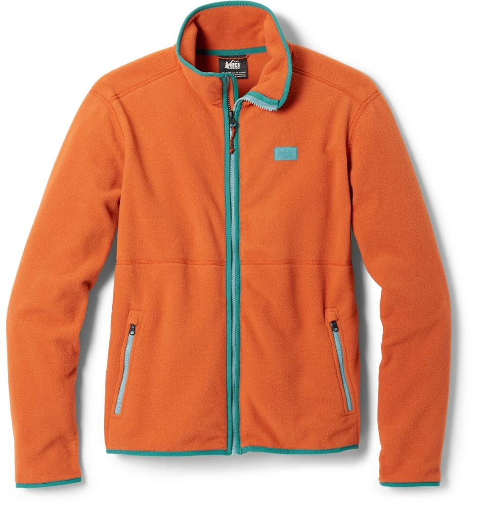 The camp-friendly REI Co-op Trailmade women’s fleece jacket keeps you toasty on cold days and cozy beneath your shell jacket. This grab-and-go for warmth is made with 100% recycled polyester.