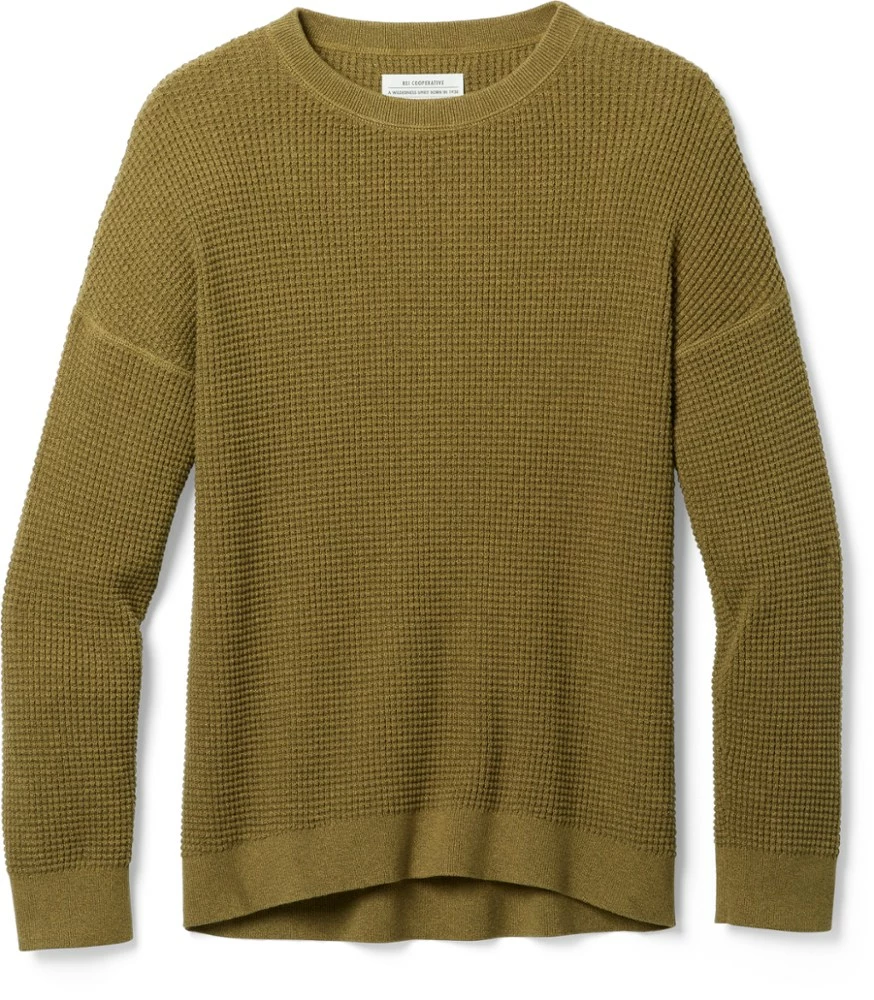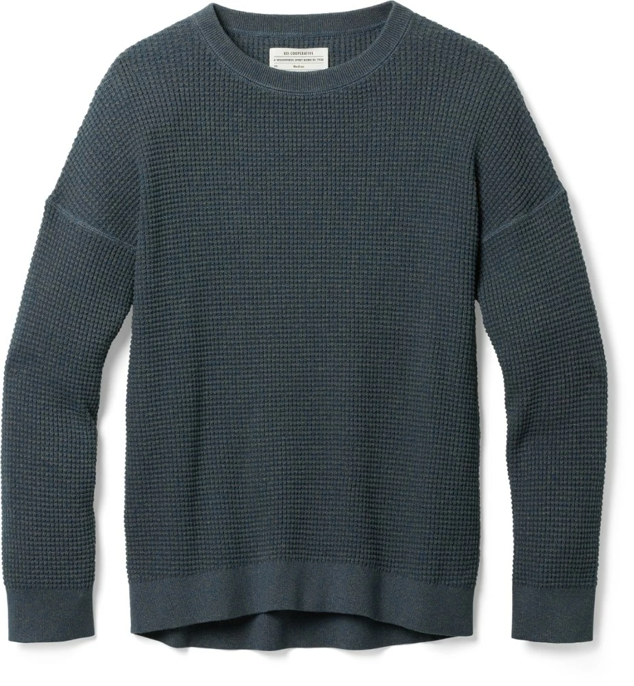 Made with organically grown cotton, the women’s REI Co-op Wallace Lake waffle sweater is warm enough for autumn walks and easily slides into a relaxed dinner out after.